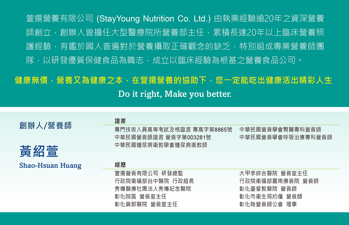 - 增量維生素A、維生素C、維生素E、鋅、硒